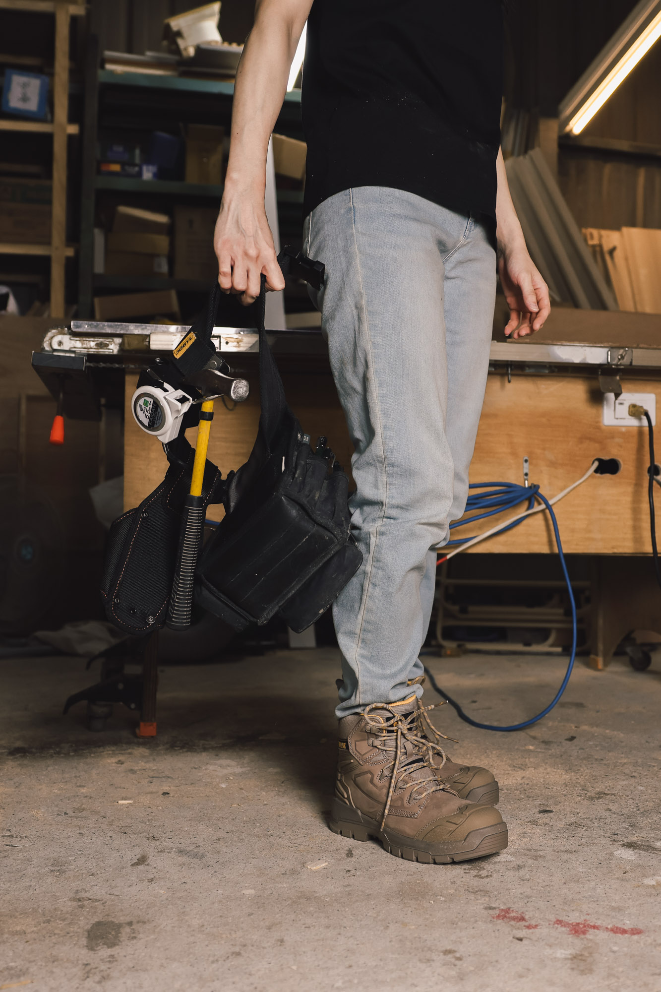 工地現場,安全第一。案場有太多不可控制的因素,對於木工師傅而言,在案場很容易踩到各式各樣的異物,還有搬運木材或施作時,不慎掉落會砸到腳等,因此工作鞋對於腳趾的保護力,耐久以及鞋底是非常重要的。