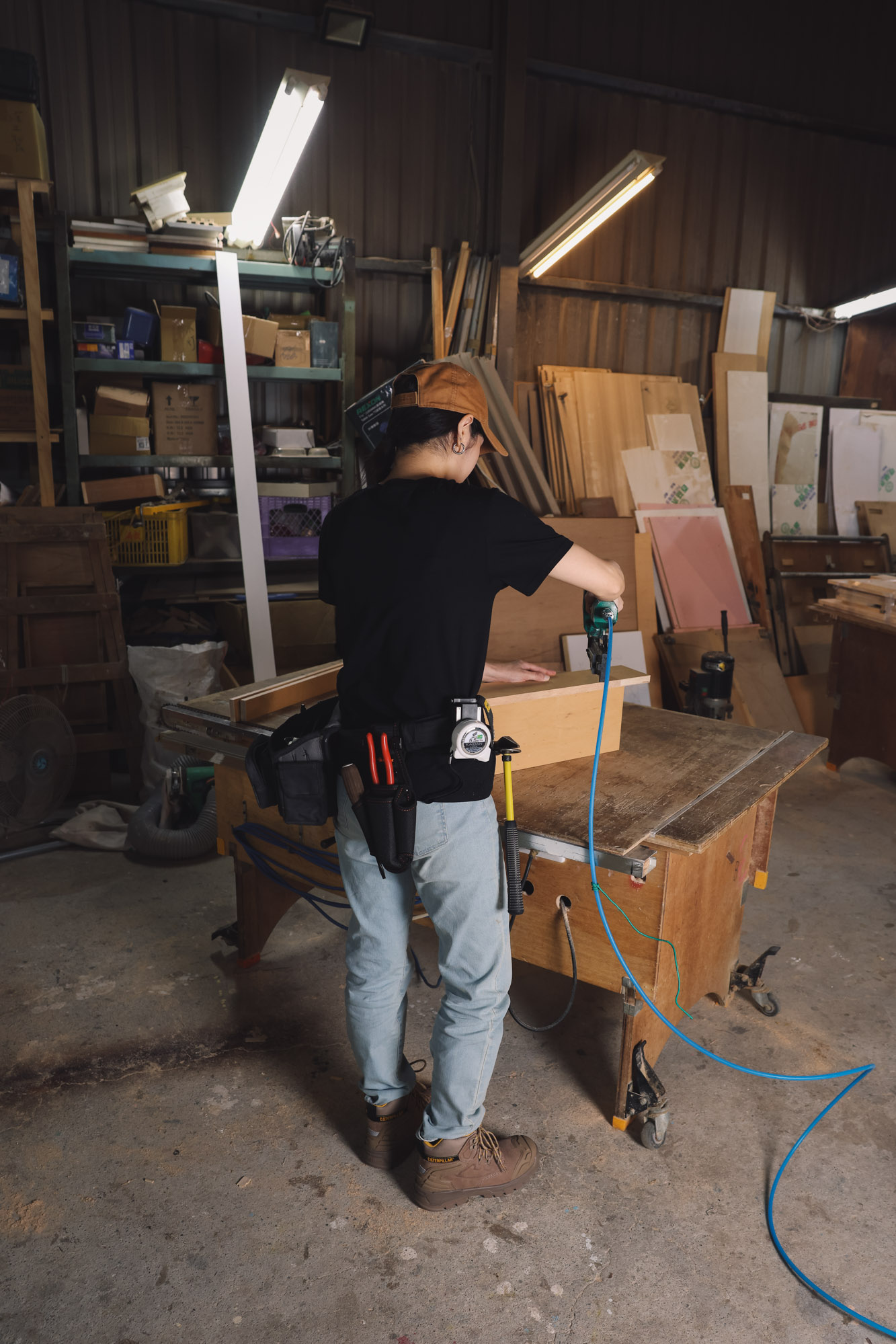 KEEDAN 這次跟工作鞋專業品牌 CAT 合作,一起紀錄這些勞動者的群像,繼太陽下的男人、宅水電油漆職人葉師傅之後,此篇主角是甚為少見的女生木工職人—阿彤。